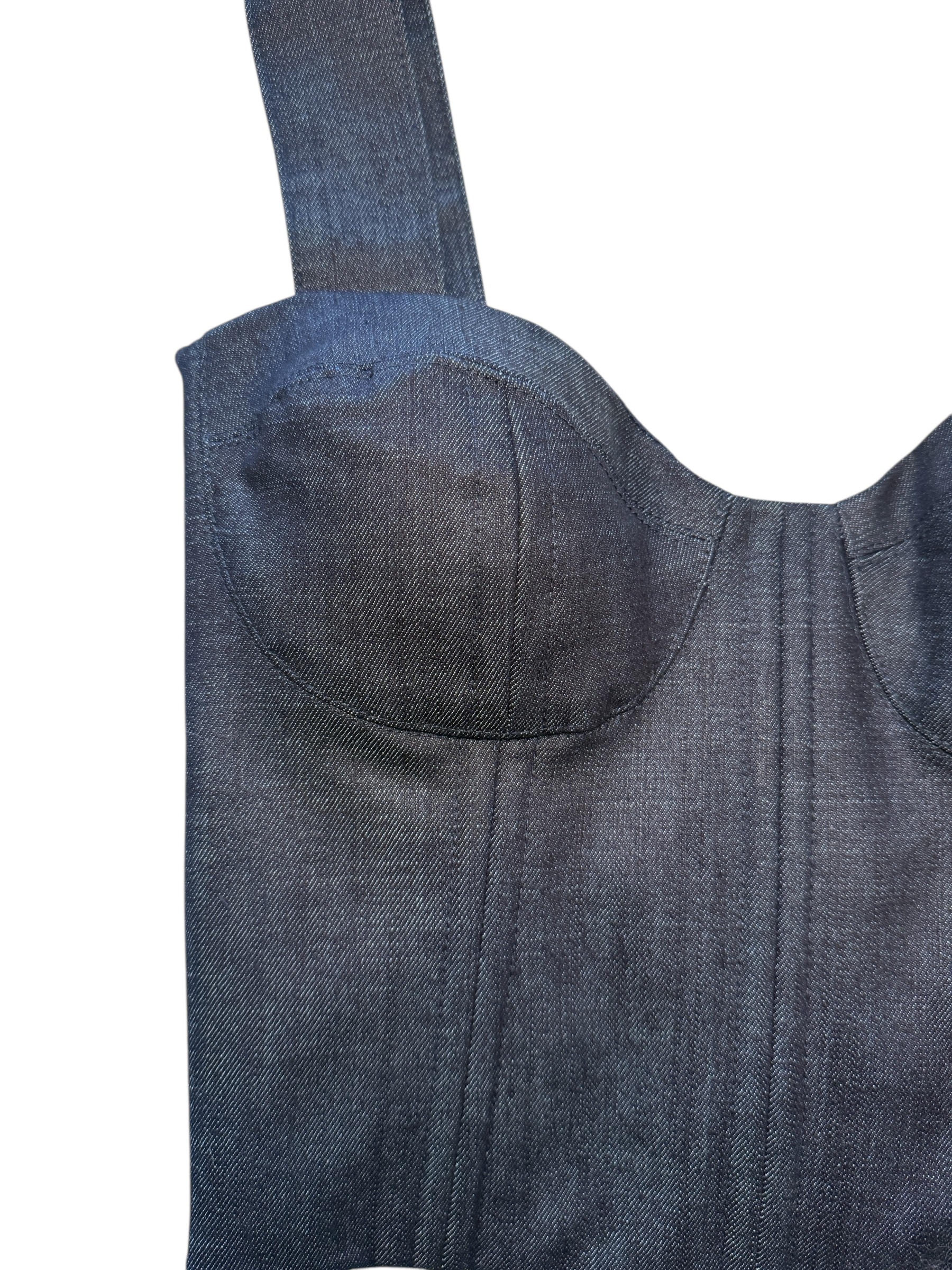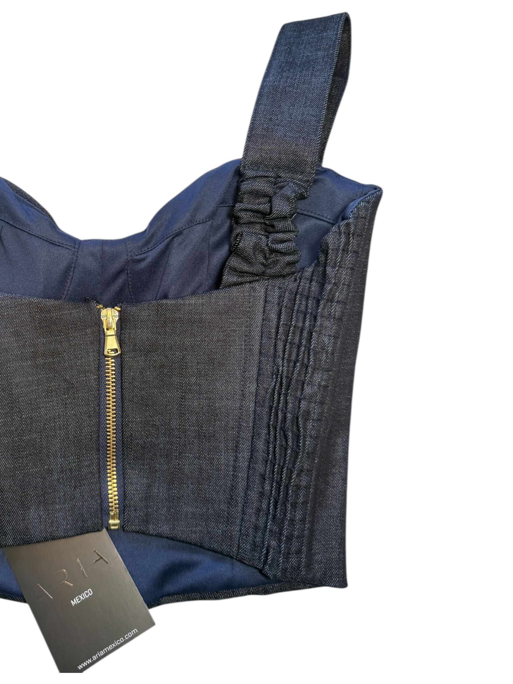 Complemento perfecto para los Creased Jeans. Este bustier de mezclilla stretch es una pieza súper versátil y funcional!